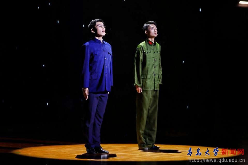 本次宣讲团成员由青岛大学青年志愿者联合会和文学与新闻传播学院源泉剧社的青年志愿者组成,青岛大学团委志愿者工作部部长徐国辉担任指导老师。为了让作品深度贴合历史、打动人心,宣讲团成员在专家老师的指导下,反复打磨舞台细节——从背景音乐的选择、到情节线索设置,每一处设计都力求将先辈经历与舞台效果完美融合。青岛大学“两弹一星”精神宣讲团的成员们坚信,《星火永怀》不仅是一部小品剧,更是一封跨越时空的“精神书信”——它向当代青年昭示,“两弹一星”精神永不过时。