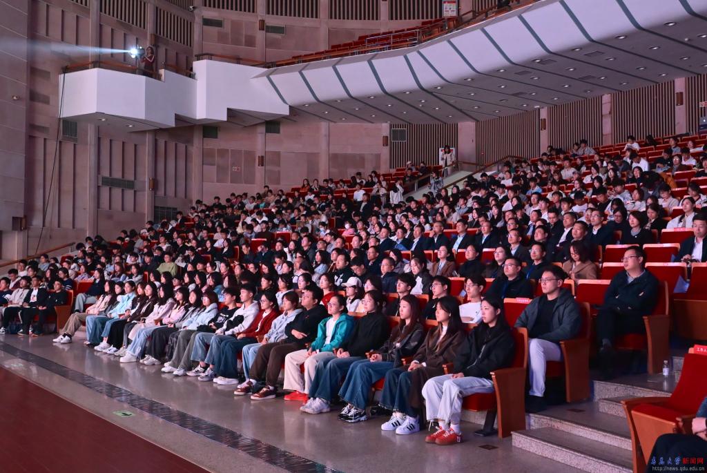 思政宣讲环节,青岛大学辅导员李明栋、朴博文、王嘉伟、孙蕾,本科生阿布都拉·木塔力甫、研究生张晓涵分别以《中国人的“大心脏”》《冰山上的守护者》《明月照征程》《歌声里的中国》《回家》《无名》为主题,向代表们呈现了充满信仰之力的强国青年说“大思政课”。