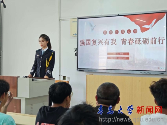 化学化工学院举办“华诞颂盛世 化学绘新章”主题国庆市集活动,为社区居民献上了一场科学魅力与爱国情感交织的科普盛宴;青岛大学国旗班紧扣“弘扬抗战精神,共筑国防长城”主题,开展抗战主题教育国防教育法普法宣传讲座、党团日主题活动、演讲征文等系列国防教育活动,有效强化了青年群体的国防观念和爱国情怀,为维护国家尊严和校园文化建设贡献力量。